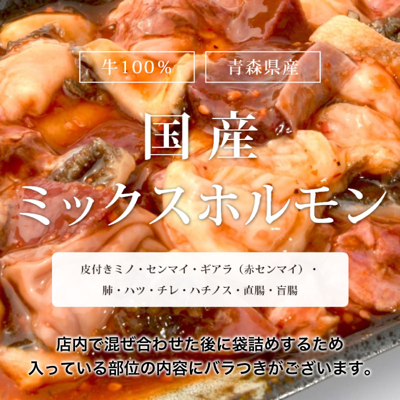 青森県産牛ミックスホルモン[500g](冷凍) 牛ホルモン 皮付きミノ センマイ フワ ハツ ハチノス 牛肉 牛もつ モツ タレ漬け 国産牛 BBQ バーベキュー 焼肉 焼き肉
