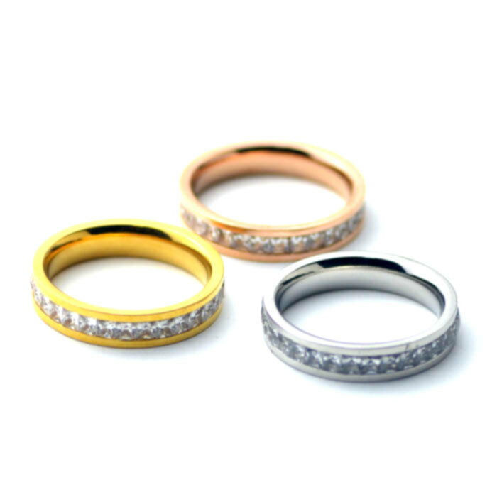 ステンレスリング/3mm幅カラフルエタニティーコンフォートフィットリング/サージカルステンレス製/TRM025